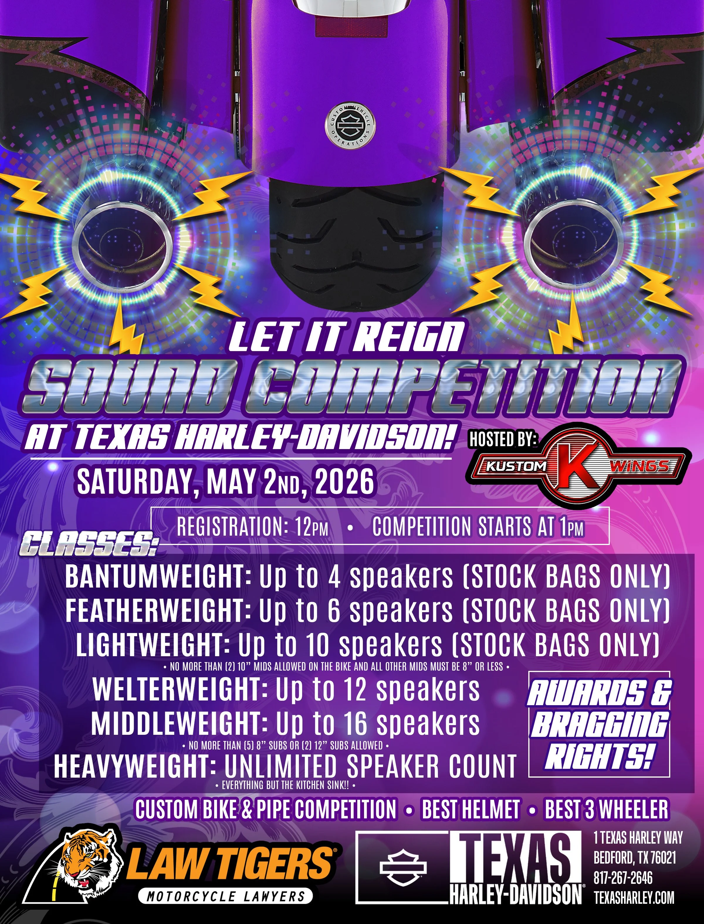 Attention all bikers!1! We are thrilled to announce this event hosted by the one and only Jay Ford with Kustom Wings! Whether you’re are a female or male biker, this is your chance to showcase your bike’s unique sound and compete for some fantastic prizes!